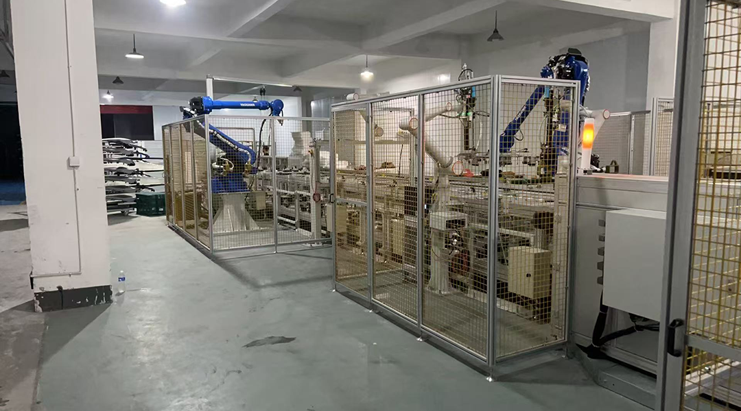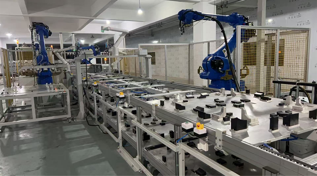 近日,常州朗伯文智能装备有限公司完成了车顶行李架全自动生产线的安装调试,并且顺利通过客户预验收。朗伯文为丹阳某公司定制生产的车顶行李架全自动生产线包括了对行李架底壳和上盖的离子火焰处理、用安川机器人自动涂胶、自动安装后盖、用协作机器人自动打螺钉以及用机器人自动搬运、压合保压等工序,真正实现了无人化、自动化和智能化。